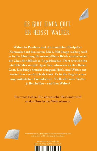 Walter ist Postbote und ziemlich gut darin, sich unbeliebt zu machen. Mit knapp sechzig wird er schließlich in die Abteilung für unzustellbare Briefe strafversetzt: in die Christkindfiliale der Post in Engelskirchen. Natürlich ist niemand schlechter für den Job geeignet als er. Eines Tages erreicht ihn ein Schreiben an den lieben Gott. Es stammt vom zehnjährigen Ben. Er will weder Handy noch Playstation, sondern nur wissen, wie man einen Klempner ruft. Walter antwortet vage und bekommt einen zweiten Brief, in dem Ben den lieben Gott ganz schön zusammenfaltet: Warum hilft er ihm nicht? Walter beginnt einen Briefwechsel mit Ben, selbstverständlich als Gott. Er erfährt immer mehr über das Leben des Jungen, der allein mit seiner depressiven Mutter lebt. Mehr als alles andere wünscht Ben sich einen Freund. Unterdessen naht Weihnachten, und Walter ist mit seinem eigenen Familiendrama beschäftigt: Die Beziehung zu seinen Kindern ist kompliziert, geschieden ist er schon lange, und da istdiese schwere Schuld aus seiner Vergangenheit, die ihm einfach keine Ruhe lässt. Vielleicht kann Walter ja Ben helfen und Ben Walter?