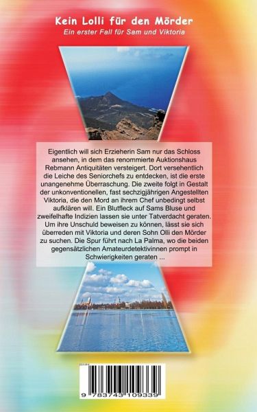 Eigentlich will sich Erzieherin Sam nur das Schloss ansehen, in dem das renommierte Auktionshaus Rebmann Antiquitäten versteigert. Dort versehentlich die Leiche des Seniorchefs zu entdecken, ist die erste unangenehme Überraschung. Die zweite folgt in Gestalt der unkonventionellen, fast sechzigjährigen Angestellten Viktoria, die den Mord an ihrem Chef unbedingt selbst aufklären will. Ein Blutfleck auf Sams Bluse und zweifelhafte Indizien lassen sie unter Tatverdacht geraten. Um ihre Unschuld beweisen zu können, lässt sie sich überreden mit Viktoria und deren Sohn Olli den Mörder zu suchen. Die Spur führt nach La Palma, wo die beiden gegensätzlichen Amateurdetektivinnen prompt in Schwierigkeiten geraten ...