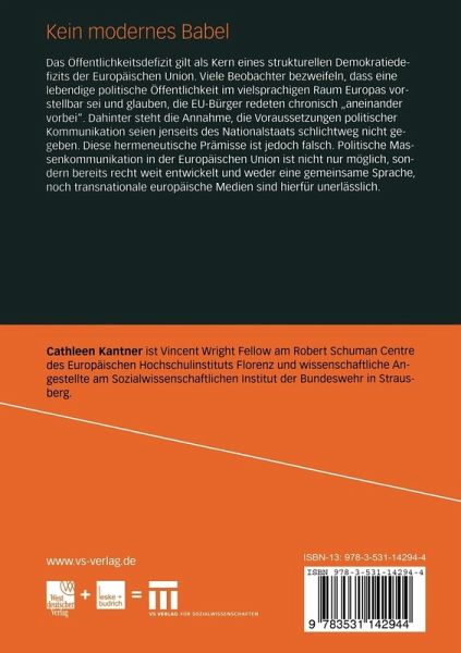 Vorbemerkung.- 1. Europäische Öffentlichkeit - Defizite und normative Erwartungen.- 2. Öffentlichkeit und demokratischer Prozess.- 2.1 Das liberale Erbe der Demokratietheorie.- 2.2 Die kommunikativen Voraussetzungen demokratischer Praxis.- 2.3 Konturen eines pragmatistisch-hermeneutischen Modells.- 3. Das Öffentlichkeitsdefizit der Europäischen Union.- 3.1 Das Parlamentarismusdefizit der Union.- 3.2 Zweifel an der Demokratiefähigkeit Europas.- 3.3 Schwierigkeiten transnationaler politischer Kommunikation.- 3.4 Die Argumente der Föderalisten: Mehr Demokratie wagen.- 4. Verstehen und Begründen im multisprachlichen Raum.- 4.1 Europa als modernes Babel?.- 4.2 Nur ein logischer Raum des Begründern.- 4.3 Die empirische Analyse europäischer Öffentlichkeit.- 5. Europa als Kommunikations- und Handlungsraum.- 5.1 Welt- und Gegenstandsbezug öffentlicher Kommunikation.- 5.2 Gegenstände europäischer politischer Massenkommunikation.- 5.3 Eine europäische "progressive Ära"?.