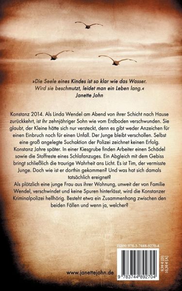 Ich wurde durch das eindrucksvoll gestaltete Cover auf dieses Buch aufmerksam und durfte in Janette John eine neue Krimiautorin entdecken. Bereits der Einstieg in die Geschichte zeugte von ihrem großen Geschick, dem Leser die Emotionen der handelnden Figuren nahe zu bringen. Die ersten beiden Kapitel dieses Buches sind dem spurlosen Verschwinden des kleinen Sohnes sowie der Beschreibung der Familie Wendel gewidmet. Die eigentliche Handlung beginnt drei Jahre später, mit der hübschen jungen Kriminalbeamtin Nadine Andres als Protagonistin. Die handelnden Personen wurden detailliert beschrieben und vermitteln Authentizität, man wird emotional in die Geschehnisse mit einbezogen. Das größte Augenmerk wird auf Nadine Andres gelegt, die mir im Verlauf der Handlung immer sympathischer wurde. Die Autorin bedient sich zudem einiger interessanter Nebenfiguren, wobei meine ganz spontane Zuneigung dem netten Senioren-Duo Maria Schulz und Charlotte Kaufmann galt. Die rüstige Berlinerin Maria stellt als pummelige, etwas ungebildete, sich sehr unverblümt äußernde Frau einen starken Kontrast zur gebildeten und kultivierten Dame aus Konstanz namens Charlotte dar. Und dennoch sind die beiden befreundet, scheinen sich gegenseitig durchaus zu ergänzen und teilen ihre gemeinsame Leidenschaft als Hobby-Ermittlerin.