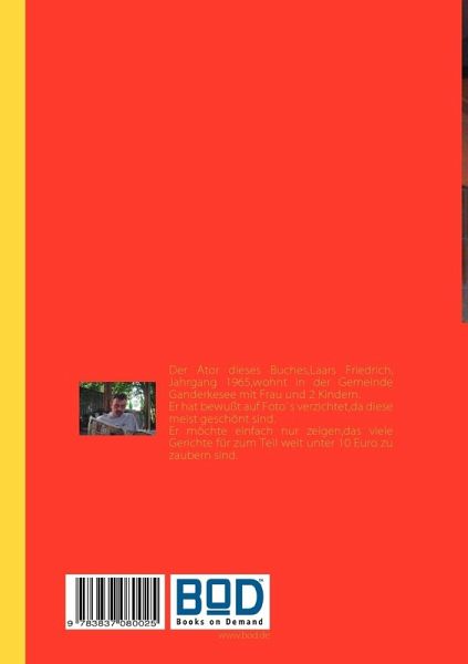 In diesem Buch sind viele leckere Rezepte für zum Teil weit unter 10 Euro beschrieben.Es soll gezeigt werden,das gutes Kochen nicht unbedingt kompliziert sein muss.Es sind komplette Menüs aufgeführt,aber auch Gerichte,die sich miteinander kombinieren lassen.Ich möchte hiermit einfach anderen Hobbyköchen Mut zusprechen,sich auch an etwas aufwendigere Rezepte zu wagen.