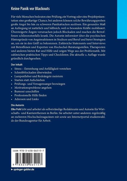 Für viele Menschen bedeuten eine Prüfung, ein Vortrag oder eine Projektpräsentation eine großartige Chance, bei anderen können solche Bewährungsproben große Angst bis hin zu schweren Panikattacken auslösen. Ein gesundes Maß an Aufregung ist natürlich und hilfreich, weil es besondere Kräfte mobilisiert. Übersteigerte Ängste verursachen jedoch Blockaden und machen die Betroffenen schlimmstenfalls krank. Die Autorin informiert über die psychischen Hintergründe von Angstreaktionen in Studium und Beruf und bietet Strategien an, um sie in den Griff zu bekommen. Zahlreiche Statements und Interviews mit Betroffenen und Experten von Hochschul-Beratungsstellen, Therapeuten und anderen bieten Rat und Hilfe und zeigen Wege aus der Problematik. Mit zahlreichen praktischen Tipps und Checklisten. Die aktuelle 2. Auflage wurde gründlich durchgesehen.