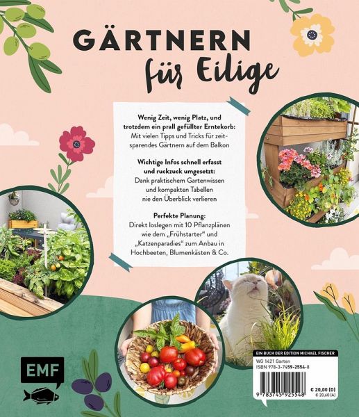 Auf einen Blick: Aussaatkalender, Übersicht der monatlichen To-Dos und vieles mehrKompakte und übersichtliche Listen und Infos sparen schon bei der Planung Zeit - so bleibt im Terminkalender mehr Platz für das Wesentliche!Viele Tipps für zeitsparendes und platzsparendes Gärtnern