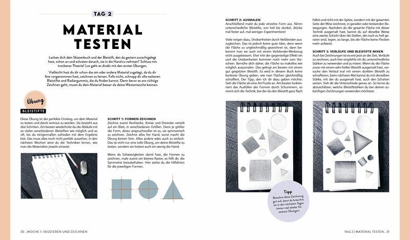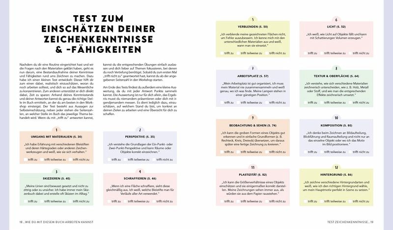 Keine öde Theorie, sondern direkt in die Praxis: mit den Übungen und Zeichentipps im Buch gibt es einen schnellen Erfolg28 unterschiedliche Übungen vermitteln alle Grundlagen und ermöglichen eine positive LernkurveVielfältige Motive Schritt für Schritt zeichnen lernen - Stillleben, Landschaften, Porträts und TiereNIcht nur für Anfänger_innen: auch Zeichner_innen mitVorkenntnissen werden auf ihrem Wissensstand abgeholtMit einem Test der eigenen Zeichenfähigkeiten direkt wissen, wo man steht, und an der richtigen Stelle im Buch loslegen