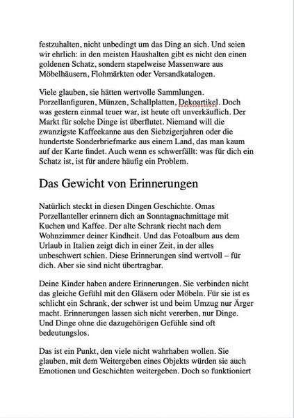 Sei ehrlich: Niemand träumt davon, deine Kisten voller Kabel, dein "wertvolles" Porzellan oder deine vergilbten Ordner zu erben. Wenn du gehst, bleibt dein Kram zurück und deine Familie darf schuften, sortieren, wegwerfen. Genau das ist die harte Wahrheit. Dieses Buch ist anders als all die Wohlfühlratgeber mit Räucherstäbchen und Aufräumformeln. Hier bekommst du kein Hochglanz Minimalismus, sondern Klartext, Lacher und handfeste Strategien. Der Unterschied: Wir reden nicht darüber, wie man hübsch faltet, sondern warum du überhaupt an Dingen klebst. Angst, Schuld, Nostalgie - genau diese Fallen legt das Buch offen und zeigt dir, wie du dich Stück für Stück davon befreist. Und hier liegt der besondere Dreh: Du lernst nicht nur, wie du Kisten leerst und Keller entrümpelst. Du lernst, wie du die unsichtbaren Gründe erkennst, die dich seit Jahren davon abhalten, loszulassen. Plötzlich verstehst du, warum du alte Geschenke nicht wegwerfen kannst, warum du Jeans hortest, die dir seit fünf Sommern nicht mehr passen, und warum dein Keller aussieht wie das Ersatzteillager eines Museums. Dieses Buch nimmt dich liebevoll und gleichzeitig schonungslos an die Hand und führt dich genau durch diese Muster hindurch. So gehst du nicht nur Schränke und Keller an, sondern auch die unsichtbaren Kisten im Kopf. Das Ergebnis: mehr Platz, weniger Ballast, ein Zuhause voller Lieblingsstücke und Angehörige, die dir eines Tages dankbar sind. Du wirst dich ertappt fühlen, du wirst grinsen, du wirst lachen und dich manchmal wundern, wie sehr dir ein Kapitel aus der Seele spricht. Vor allem aber wirst du merken, wie unglaublich befreiend es ist, wenn der Ballast verschwindet und echtes Leben zurückkommt. Genau darum geht es: weniger Zeug, mehr Klarheit, mehr Geschichten, die bleiben. Dieses Buch ist dein persönlicher Befreiungsschlag - humorvoll, praktisch und radikal ehrlich.