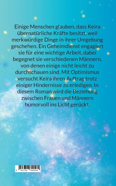 Einige Menschen glauben, dass Keira übernatürliche Kräfte besitzt, weil merkwürdige Dinge in ihrer Umgebung geschehen. Ein Geheimdienst engagiert sie für eine wichtige Arbeit, dabei begegnet sie verschiedenen Männern, von denen einige nicht leicht zu durchschauen sind. Mit Optimismus versucht Keira ihren Auftrag trotz einiger Hindernisse zu erledigen. In diesem Roman wird die Beziehung zwischen Frauen und Männern humorvoll ins Licht gerückt.
