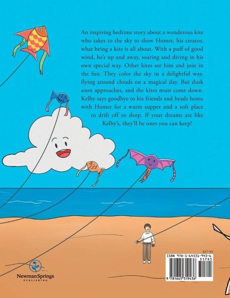 An inspiring bedtime story about a wonderous kite who takes to the sky to show Homer, his creator, what being a kite is all about. With a puff of good wind, he's up and away, soaring and diving in his own special way. He dips to the left, then tacks to right, in smooth gentle moves that are made for a kite. Other kites see him and join in the fun. They color the sky in a delightful way, flying around clouds on a magical day. But dusk soon approaches, and the kites must come down. Kelby says goodbye to his friends and heads home with Homer for a warm supper and a soft place to drift off to sleep. If your dreams are like Kelby's, they'll be ones you can keep!