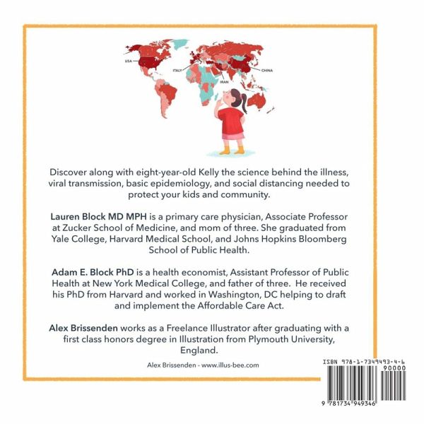 Discover along with eight-year-old Kelly the science behind the COVID-19 illness, viral transmission, basic epidemiology, and social distancing needed to protect your kids and community. Dr. Lauren Block MD MPH, a primary care physician and medical educator and Dr. Adam Block PhD, a health economist and public health professor, are parents of three curious kids. After months treating COVID-19 patients in New York City this is what we teach our children about the science behind the COVID-19 pandemic. This is the only children's book that goes into depth on the science behind the spread of coronavirus, how the virus causes the symptoms it does, and how vaccines contribute to herd immunity. You and your children will understand why the virus spreads so rapidly, how handwashing and social distancing can prevent transmission, how kids can help others during the pandemic, how people who become ill are treated in the hospital, and how you can protect your family from infection.