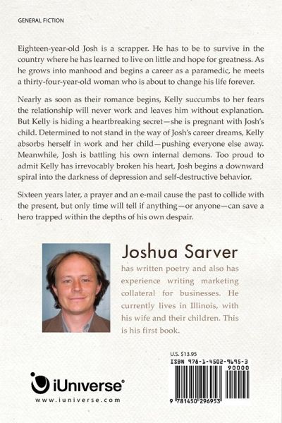 Eighteen-year-old Josh is a scrapper. He has to be to survive in the country where he has learned to live on little and hope for greatness. As he grows into manhood and begins a career as a paramedic, he meets a thirty-four-year-old woman who is about to change his life forever. Nearly as soon as their romance begins, Kelly succumbs to her fears the relationship will never work and leaves him without explanation. But Kelly is hiding a heartbreaking secret-she is pregnant with Josh's child. Determined to not stand in the way of Josh's career dreams, Kelly absorbs herself in work and her child-pushing everyone else away. Meanwhile, Josh is battling his own internal demons. Too proud to admit Kelly has irrevocably broken his heart, Josh begins a downward spiral into the darkness of depression and self-destructive behavior. Sixteen years later, a prayer and an e-mail cause the past to collide with the present, but only time will tell if anything-or anyone-can save a hero trapped within the depths of his own despair.