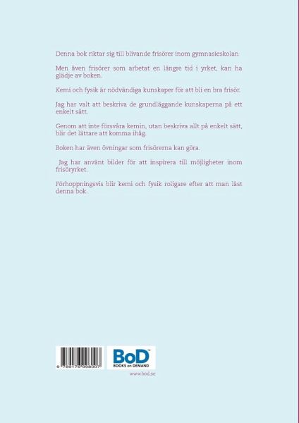 Boken har även övningar som frisörerna kan göra. Jag har använt bilder för att inspirera till möjligheter inom frisöryrket. Förhoppningsvis blir kemi och fysik roligare efter att man läst denna bok.