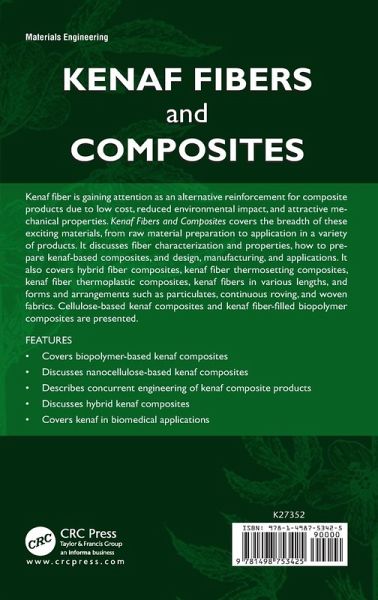 The book covers kenaf fibres and composites, from raw material preparation to final products. It discusses fibre characterization and properties, preparing kenaf based composites and design, manufacturing and applications. Cellulose-based kenaf composites and kenaf fibre-filled biopolymer composites are presented.