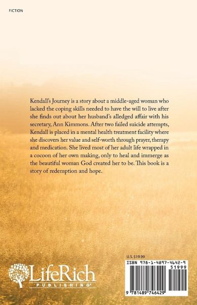 Kendall's Journey is a story about a middle-aged woman who lacks the coping skills needed to have the will to live after she finds out about her husband's alledged affair with his secretary, Ann Kimmons. After two failed suicide attempts, Kendall is placed in a mental health treatment facility where she discovers her value and self-worth through prayer, therapy and medication. She lived most of her adult life wrapped in a cocoon of her own making, only to heal and immerge as the beautiful woman God created her to be. This book is a story of redemption and hope.
