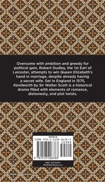 Robert Dudley, the first Earl of Leicester, is happy with his wife, Amy Robsart, but will not let her tell anyone that they are married. Even though they both love each other, Robert values power and popularity much more than he values his wife. After secluding Amy in a house called Cumnor Hall with the help of his henchman, Varney, Robert entertains the idea of marrying Queen Elizabeth I. Fueled by desire for the power of the throne, Robert hides his wife and tries to seduce the queen, who had already taken a liking to the man. When Amy encounters an ex-lover, Tressilian, he tells her of Robert's plan. At first unwilling to believe her husband could be so deceitful, Amy refuses Tressilian's offer to take her away from Cumnor Hall. Overcome with compassion for Amy, Tressilian seeks out her father for help, hoping to help her get away from Robert and foil his plan. However, tensions rise at Kenilworth castle during the queen's reception when Amy attempts to escape Cumnor Hall to warn Queen Elizabeth and tell her the truth about Robert. Featuring sensual politics, plot twists, and murder, Sir Walter Scott's Kenilworth is a memorizing tale of love and deception. Written with vivid descriptions and beautiful prose, Kenilworth is part of Sir Walter Scott's beloved Waverley series. With themes of selfishness, love, and ambition, Kenilworth is relatable and emotional. Through the depiction of prominent historical figures and landmarks, Sir Walter Scott shares rich English history with modern audiences. Kenilworth has inspired both plays and novels, and has been adapted for theater and television. This edition of Kenilworth by Sir Walter Scott now features a new, eye-catching cover design and is printed in a font that is both modern and readable. With these accommodations, this edition of Kenilworth crafts an accessible and pleasant reading experience for modern audiences while restoring the original mastery and drama of Sir Walter Scott's literature. Since our inception in 2020, Mint Editions has kept sustainability and innovation at the forefront of our mission. Each and every Mint Edition title gets a fresh, professionally typeset manuscript and a dazzling new cover, all while maintaining the integrity of the original book. With thousands of titles in our collection, we aim to spotlight diverse public domain works to help them find modern audiences. Mint Editions celebrates a breadth of literary works, curated from both canonical and overlooked classics from writers around the globe.