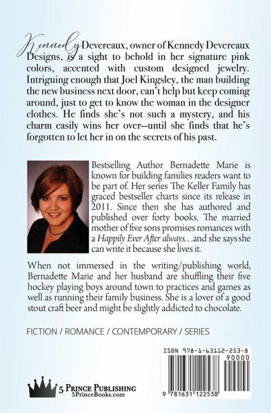Kennedy Devereaux, owner of Kennedy Devereaux Designs, is a sight to behold in her signature pink colors, accented with custom designed jewelry. Intriguing enough that Joel Kingsley, the man building the new business next door, can't help but keep coming around, just to get to know the woman in the designer clothes. He finds she's not such a mystery, and his charm easily wins her over--until she finds that he's forgotten to let her in on the secrets of his past.