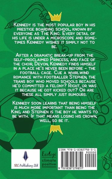 Kennedy is the most popular boy in his prestige boarding school, known by everyone as The King. Every detail of his life is under a microscope and sometimes Kennedy wishes it simply not to be. After a dramatic break-up from the self-proclaimed Princess, and face of the choir, Devon, Kennedy finds himself in a place he's never been before - the football cage. Cue a whirlwind romance with footballer Stephen, the trans boy who moved schools because he'd committed a felony? Right, or was it because he got kicked out? Or are these all simply just rumours. Kennedy soon learns that being himself is much more important than being the King, and Stephen is the boy he wants to be with. If that means losing his crown, well, so be it. Content Warnings: Bullying, sex, mention of injury, injury, discussion surrounding HIV, mention of suicide.