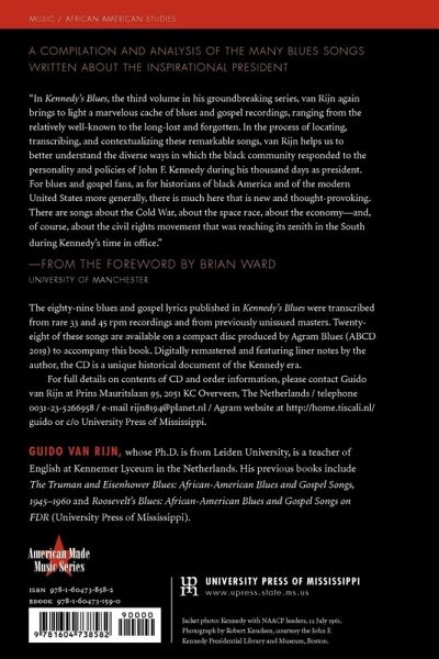 A compilation and analysis of the many blues and gospel songs written about the inspirational president Kennedy's Blues: African American Blues and Gospel Songs on JFK collects in a single volume the blues and gospel songs written by African Americans about the presidency of John F. Kennedy and offers a close analysis of Kennedy's hold upon the African American imagination. These blues and gospel songs have never been transcribed and analyzed in a systematic way, so this volume provides a hitherto untapped source on the perception of one of the most intriguing American presidents. After eight years of Republican rule the young Democratic president received a warm welcome from African Americans. However, with the Cold War military draft and the slow pace of civil rights measures, inspiration temporarily gave way to impatience. Dr. Martin Luther King, Jr., Medgar Evers, the March on Washington, the groundbreaking civil rights bill--all found their way into blues and gospel songs. The many blues numbers devoted to the assassination and the president's legacy are evidence of JFK's near-canonization by African Americans. Blues historian Guido van Rijn shows that John F. Kennedy became a mythical hero to blues songwriters despite what was left unaccomplished. Guido van Rijn is teacher of English at Kennemer Lyceum in Overveen, the Netherlands. His previous books include The Truman and Eisenhower Blues: African American Blues and Gospel Songs, 1945-1960.