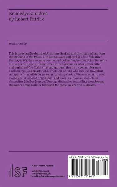 This is an evocative drama of American idealism and the tragic fallout from the euphoria of the 1960s. Five lost souls are gathered in a bar, Valentine's Day, 1974: Wanda, a secretary-turned-schoolteacher, keeping John Kennedy's memory alive despite the inevitable slurs; Sparger, an actor grown bitter and cynical as New York's vital underground theatre movement becomes a commercial wasteland; Rona, a political activist who sees the movement collapsing from self-indulgence and apathy; Mark, a Vie