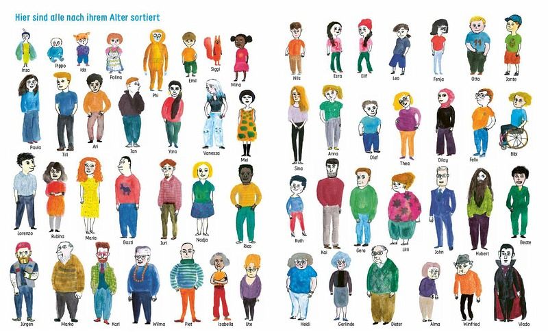 Franziska Ludwig führt uns in ihrem reichen Wimmelbilderbuch durch das Leben von 56 Figuren, die sie immer wieder neu sortiert, je nach Eigenheiten, Vorlieben und aktueller Lebenslage. Und wir sind mittendrin: beim Blättern, Suchen und Geschichten-Erfinden. Dabei erkennen wir, wie viel uns verbindet - und wie wertvoll unsere Unterschiede sind.