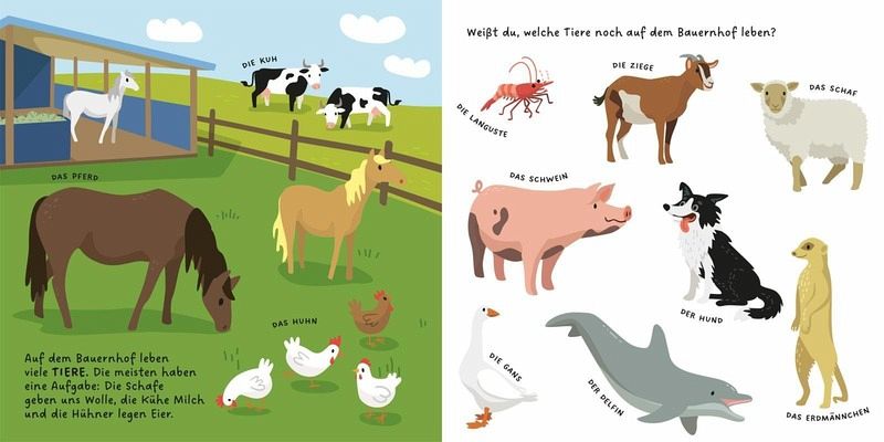 Ob Tiere, Fahrzeuge, Felder oder Gärten - hier erfahren Kinder alles über das Leben und Arbeiten auf dem Bauernhof. Perfekt zum gemeinsamen Entdecken und Lernen!