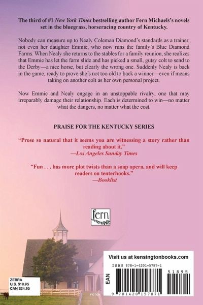 The third of #1 New York Times bestselling author Fern Michaels’s novels set in the bluegrass, horseracing country of Kentucky. Nobody can measure up to Nealy Coleman Diamond’s standards as a trainer, not even her daughter Emmie, who now runs the family’s Blue Diamond Farms. When Nealy she returns to the stables for a family reunion, she realizes that Emmie has let the farm slide and has picked a small, gutsy colt to send to the Derby—a nice horse, but clearly the wrong one. Suddenly Nealy is back in the game, ready to prove she’s not too old to back a winner—even if means taking on another colt as her own personal project. Now Emmie and Nealy engage in an unstoppable rivalry, one that may irreparably damage their relationship. Each is determined to win—no matter what the dangers, no matter what the cost.