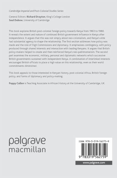 This book explores British post-colonial foreign policy towards Kenya from 1963 to 1980. It reveals the extent and nature of continued British government influence in Kenya after independence. It argues that this was not simply about neo-colonialism, and Kenya's elite had substantial agency to shape the relationship. The first section addresses how policy was made and the role of High Commissions and diplomacy. It emphasises contingency, with policy produced through shared interests and interaction with leading Kenyans. It argues that British policy-makers helped to create and then reinforced Kenya's neo-patrimonialism. The second part examines the economic, military, personal and diplomatic networks which successive British governments sustained with independent Kenya. A combination of interlinked interests encouraged British officials to place a high value on this relationship, even as their world commitments diminished.