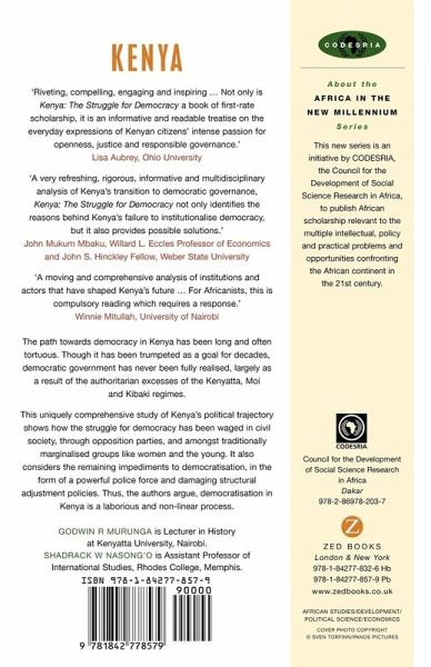 The path towards democracy in Kenya has been long and often tortuous. Though it has been trumpeted as a goal for decades, democratic government has never been fully realised, largely as a result of the authoritarian excesses of the Kenyatta, Moi and Kibaki regimes. This uniquely comprehensive study of Kenya's political trajectory shows how the struggle for democracy has been waged in civil society, through opposition parties, and amongst traditionally marginalised groups like women and the young. It also considers the remaining impediments to democratisation, in the form of a powerful police force and damaging structural adjustment policies. Thus, the authors argue, democratisation in Kenya is a laborious and non-linear process. Kenyans' recent electoral successes, the book concludes, have empowered them and reinvigorated the prospects for democracy, heralding a more autonomous and peaceful twenty-first century.