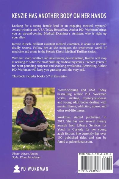 FROM USA TODAY BESTSELLING AUTHOR, P.D. WORKMAN! Kenzie has another body on her hands Looking for a strong female lead in an engaging medical mystery? Award-winning and USA Today Bestselling Author P.D. Workman brings you an up-and-coming Medical Examiner's Assistant who is right up your alley. Kenzie Kirsch, brilliant assistant medical examiner, is about to uncover deadly secrets. Follow her as she navigates the treacherous world of medicine and crime in the Kenzie Kirsch Medical Thrillers series. With her sharp intellect and unwavering determination, Kenzie will stop at nothing to solve the most puzzling medical mysteries. Prepare yourself for heart-pounding suspense and shocking revelations. Bestselling Author P.D. Workman will keep you guessing until the very end. This ebook includes three books in this series: 5. Rushin' Death 6. Posed for Death 7. Death of a Corpse Rushin' Death The cold reception Kenzie got from the stranger when she arrived at her mother's house on Christmas day was nothing compared to what he got when he arrived at the morgue. Posed for Death Kenzie thought she had a pretty good understanding of aging and elder care. She was a medical professional, after all. But when her postmortem findings cause her to look more deeply into the sometimes dark world of elder care, she is forced to reconsider. Death of a Corpse The search for a missing girl comes to a tragic end when her body is found partially submerged in a body of water in the Vermont wilderness. But when Kenzie examines the remains, she finds that it is not the girl they were looking for, but someone who has been dead for much longer than that. ¿¿¿¿¿¿¿¿¿¿ P.D. Workman never fails to deliver an intriguing mystery with plenty of thrills, drama, and unexpected twists that will hold your attention from start to finish. The characters are believable, with flaws and attributes that will endear them to the reader. The stories always have, at their heart, socially relevant topics that are explored with compassion, intelligence, and dignity. ¿¿¿¿¿¿¿¿¿¿ The writing is skillful, with wonderfully complex plots and well-developed characters. Highly recommended! If you are a reader of the Zachary Goldman Mysteries series, you have already met Kenzie Kirsch. This series is a spinoff from Zachary Goldman Mysteries, giving Kenzie a front-and-center position in solving medical mysteries. Join Dr. Kenzie Kirsch as she uncovers mysteries, conspiracies, and thrills!