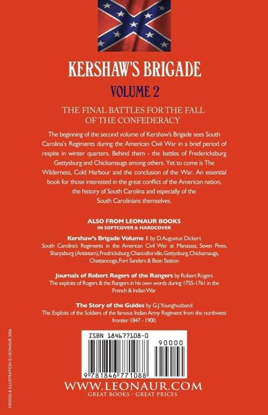 Kershaw's Brigade - volume 2 The Final Battles for the fall of the Confederacy. The beginning of the second volume of Kershaw's Brigade sees South Carolina's Regiments during the American Civil War in a brief period of respite in winter quarters. Behind them - the battles of Fredericksburg Gettysburg and Chickamauga among others. Yet to come is The Wilderness, Cold Harbour and the conclusion of the War. An essential book for those interested in the great conflict of the American nation, the history of South Carolina and especially of the South Carolinians themselves.