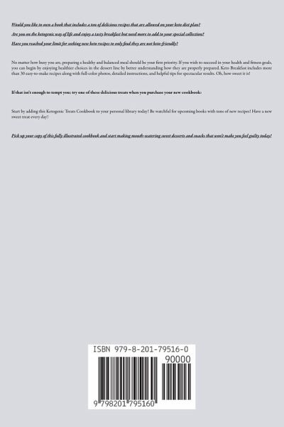 Would you like to own a book that includes a ton of delicious recipes that are allowed on your keto diet plan? Are you on the ketogenic way of life and enjoy a tasty breakfast but need more to add to your special collection? Have you reached your limit for seeking new keto recipes to only find they are not keto-friendly? No matter how busy you are, preparing a healthy and balanced meal should be your first priority. If you wish to succeed in your health and fitness goals, you can begin by enjoying healthier choices in the dessert line by better understanding how they are properly prepared. Keto Breakfast includes more than 30 easy-to-make recipes along with full-color photos, detailed instructions, and helpful tips for spectacular results. Oh, how sweet it is! If that isn't enough to tempt you; try one of these delicious treats when you purchase your new cookbook: Start by adding this Ketogenic Treats Cookbook to your personal library today! Be watchful for upcoming books with tons of new recipes! Have a new sweet treat every day! Pick up your copy of this fully illustrated cookbook and start making mouth-watering sweet desserts and snacks that won't make you feel guilty today!