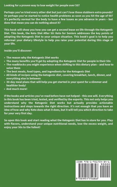 Looking for a proven way to lose weight for people over 50? Perhaps you’ve tried every other diet but just can’t lose those stubborn extra pounds? Or perhaps you’ve started to notice health problems as soon as you hit the age of 50? It’s perfectly normal for the body to have a few issues as you advance in years – but does that mean you can do nothing about it? This book will show you how you can get a second lease on life through the Ketogenic Diet. This book, the Keto Diet After 50: Keto for Seniors addresses the key points of adopting the Ketogenic Diet to your unique situation. This book’s goal is to help you reformat your dietary lifestyle to help you raise your potential during this stage of your life. Inside you’ll discover: The reason why the Ketogenic Diet works The many benefits you’ll get by adopting the Ketogenic Diet for people in their 50s The roadblocks you might experience when shifting to this dietary plan – and how to solve them The best meals, food types, and ingredients for the Ketogenic Diet All kinds of recipes using the ketogenic diet, covering breakfast, lunch, dinner, and everything else in between 30-day meal plans that will help you get started in your quest for a slimmer and healthier body! And much more! If the books and articles you’ve read before have not helped – this one will. Everything in this book has been tried, tested, and verified by the experts. This not only helps you understand why the Ketogenic Diet works but actually provides actionable instructions and steps towards the right direction. It’s not enough that you have an idea of how and why Keto does what it does, but it will tell you which direction to take for your very first day. I understand that one of the biggest frustrations about going on a new diet is the difficulty of making that "switch" from your regular diet to a new one. Which food should you try first or what meal should you replace first? The Keto Diet after 50: Keto for Seniors: The Complete Guide to Burn Fat, Lose Weight, and Prevent Diseases – With Simple 30 Minute Keto Recipes and a 30-Day Meal Plan solves all this by showing you step-by-step from the first to the very last day. To help you further, we’ve added all kinds of recipes that should help you quickly make substitutions in the meal plan or perhaps, let you experiment with new flavors. So click the "Buy Now" button and start reading what the Ketogenic Diet has in store for you. Play with flavors, understand your unique nutritional needs, lose the excess weight, and enjoy your 50s to the fullest!