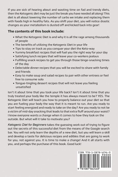 If you are sick of hearing about and wasting time on fad and trendy diets, then the Ketogenic diet may be just the break you have needed all along! This diet is all about lowering the number of carbs we intake and replacing them with foods high in healthy fats. As you shift your diet, you will notice drastic changes as your metabolism is dusted off and kicked back into gear! Isn’t it about time that you took your life back? Isn’t it about time that you truly treated your body like the temple it has always meant to be? YES. The Ketogenic Diet will teach you how to properly balance out your diet so that you are fueling your body the way that it is meant to run. Are you ready to start feeling energized and ready to take on the day? Are you ready to not be a victim of mid-day snacking that leads to that extra fluff around your waist? I know everyone wants a change when it comes to how they look on the outside. But what will it take to motivate you? Ketogenic Diet for Beginners takes the guessing work out of trying to figure out the secrets of this successful diet from the means of the Google search bar. You will not only learn the depths of a new diet, but you will learn a skill and develop a taste for delicious recipes and edibles that are going to work for you, not against you. It is time to make a change! And it all starts with you, and perhaps the purchase of this book. Good luck!