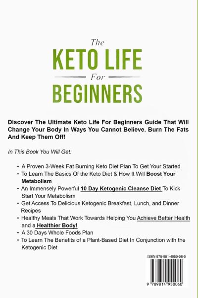 Discover How THE KETO LIFE FOR BEGINNERS Can Get You Started On Your Way To Perfect Health and Fitness Are you looking for a way to get started on the ketognic diet but not sure where to begin? Are you sick and tired of diets that don't work and brings you unhappiness when you fail at them? What If I Told You That The Keto Life Could Be The ONE Thing You've Been Searching For To Get You To Your Health Goals? In "The KETO LIFE For Beginners" you will learn and find...Why Living The Keto Life Can Be Magical and Transformative For You The Basics of The Keto Life Absolutely Delicious and Mouthwatering Keto Breakfast, Lunch, and Dinner Recipes That Will Keep You Wanting More Knowledge About Proper Nutrition How A Lack of Exercise Can Hamper Your Progress How To Avoid Medication and Improve Your Gut How To Customize A Perfect Keto Schedule That You Will Follow Voluntarily How To Set Yourself Up For Success And so much more... We all want to improve our health, and a big part of that means changing the way you've always been doing things. Start afresh and start with renewed vigor to achieve the goals you've set for yourself in health and fitness. Let's Get You To Great Health ASAP! Pick up your copy of the book right now by clicking the BUY NOW button at the top of this page! To Your Success!