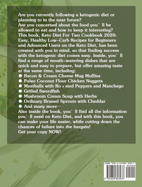 Are you currently following a ketogenic diet or planning to in the near future? Are you concerned about the food you'll be allowed to eat and how to keep it interesting? This book, Keto Diet For Two Cookbook 2020: Easy, Healthy Low-Carb Recipes for Beginners and Advanced Users on the Keto Diet, has been created with you in mind, so that finding success with the ketogenic diet comes easy. Inside, you'll find a range of mouth-watering dishes that are quick and easy to prepare, but offer amazing taste at the same time, including: ¿ B¿con & Cre¿m Cheese Mug Muffins ¿ P¿leo Coconut Flour Chicken Nuggets ¿ Me¿tb¿lls with Rösted Peppers ¿nd M¿nchego ¿ Grilled Swordfish ¿ Mushroom Cre¿m Soup with Herbs ¿ Ordin¿ry Brussel Sprouts with Chedd¿r ¿ And many more... Also inside the book, you'll find all the information you'll need on Keto Diet, and with this book, you can make your life easier, while cutting down the chances of failure into the bargain! Get your copy NOW!