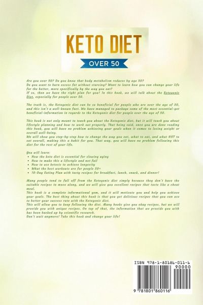 Are you over 50? Do you know that body metabolism reduces by age 50? Do you want to burn excess fat without starving? Want to learn how you can change your life for the better, more specifically by the way you eat? If so, then we have the right plan for you! In this book, we will talk about the Ketogenic Diet, especially for people over 50. The truth is, the Ketogenic diet can be so beneficial for people who are over the age of 50, and this isn't a well-known fact. What we have managed to do is package some of the most essential-yet beneficial- information in regards to the Ketogenic diet for people who are over the age of 50. This book is not only meant to teach you about the Ketogenic diet, but it will teach you about lifestyle planning and how to work out properly. That being said, once you are done reading this book, you will have no problem achieving your goals when it comes to losing weight or overall well-being. We will show you step-by-step how to change the way you eat, what to eat, and what NOT to eat overall, making this a habit for you. That way, you will have no problem following this diet for the rest of your life. You will learn:How the keto diet is essential for slowing aging How to make this a lifestyle and not fail How to use ketosis to achieve longevity What the best workouts are for people 50+ 10-Day Eating Plan with tasty recipes for breakfast, lunch, snack, and dinner! Many people tend to fall off from the Ketogenic diet simply because they don't have the suitable recipes to move along, and we will give you excellent recipes that taste like a cheat meal. This book is a complete informational gem, and it will motivate you and help you achieve your goals. The best thing about this book is that you get delicious recipes that you can use to better your success rate with the Ketogenic diet. This will allow you to keep following the diet. Many books give you okay recipes, but we will provide you with unique recipes. On top of that, the information that we provide you with has been backed up by scientific research. Don't wait anymore! Take this book and change your life! Buy it NOW!