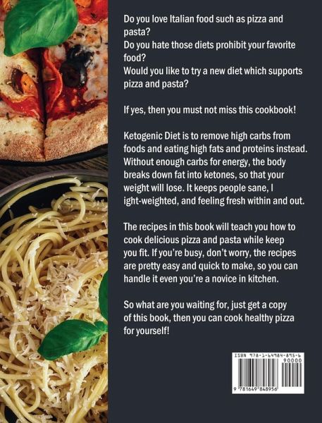 Do you love Italian food such as pizza and pasta? Do you hate those diets prohibit your favorite food? Would you like to try a new diet which supports pizza and pasta? If yes, then you must not miss this cookbook! Ketogenic Diet is to remove high carbs from foods and eating high fats and proteins instead. Without enough carbs for energy, the body breaks down fat into ketones, so that your weight will lose. It keeps people sane, light-weighted, and feeling fresh within and out. The recipes in this book will teach you how to cook delicious pizza and pasta while keep you fit. If you're busy, don't worry, the recipes are pretty easy and quick to make, so you can handle it even you're a novice in kitchen. So what are you waiting for, just get a copy of this book, then you can cook healthy pizza for yourself!