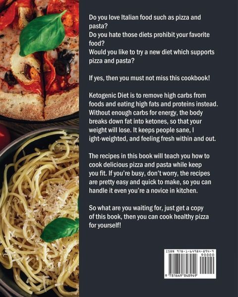 Do you love Italian food such as pizza and pasta? Do you hate those diets prohibit your favorite food? Would you like to try a new diet which supports pizza and pasta? If yes, then you must not miss this cookbook! Ketogenic Diet is to remove high carbs from foods and eating high fats and proteins instead. Without enough carbs for energy, the body breaks down fat into ketones, so that your weight will lose. It keeps people sane, light-weighted, and feeling fresh within and out. The recipes in this book will teach you how to cook delicious pizza and pasta while keep you fit. If you're busy, don't worry, the recipes are pretty easy and quick to make, so you can handle it even you're a novice in kitchen. So what are you waiting for, just get a copy of this book, then you can cook healthy pizza for yourself!