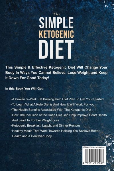 Discover How The SIMPLE KETOGENIC DIET Can Drastically Improve Your Metabolic State for Peak Performance! Are you tired of being tired all the time? Are you looking to gain tremendous amounts of energy without sacrificing nutrition or resorting to unsustainable drugs and supplements? What If I Told You That The Simple Ketogenic Diet Can Give You Abundant Amount of Energy Whilst Providing You With Optimum Nutrition At The Same Time? In "The Simple Ketogenic Diet" you will learn...The Secret Power of Ketosis Powerful Keto Meal Plan Madness For You Delicious Breakfast, Lunch, and Dinner Recipes To Savour Understanding Insulin Resistance Employing The DASH Effect For Enhanced Benefits How To Create A Long Term Management and Maintenance Plan Creating A Diet Plan That Works For You Tips and Tricks To Maintain Heightened Ketosis In Your Body And so much more... Let's Get You To Great Health ASAP! Pick up your copy of the book right now by clicking the BUY NOW button at the top of this page! To Your Success!