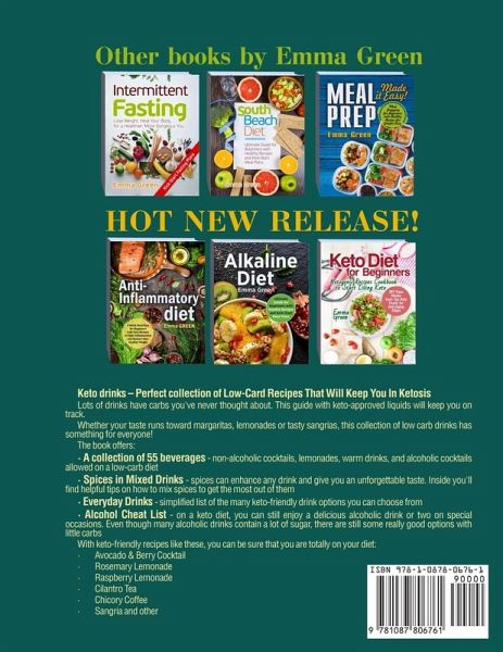 Keto Drinks – Perfect Collection of Low-Card Recipes That Will Keep You In Ketosis Lots of drinks have carbs you've never thought about. This guide with keto-approved liquids will keep you on track. Whether your taste runs toward margaritas, lemonades or tasty sangrias, this collection of low carb drinks has something for everyone! The book offers: Best collection of 55 beverages - non-alcoholic cocktails, lemonades, warm drinks, and alcoholic cocktails allowed on a low-carb diet Spices in Mixed Drinks - spices can enhance any drink and give you an unforgettable taste. Inside you’ll find helpful tips on how to mix spices to get the most out of them Everyday Drinks - simplified list of the many keto-friendly drink options you can choose from Alcohol Cheat List - on a keto diet, you can still enjoy a delicious alcoholic drink or two on special occasions. Even though many alcoholic drinks contain a lot of sugar, there are still some really good options with little carbs With keto-friendly recipes like these, you can be sure that you are totally on your diet: Avocado & Berry Cocktail Rosemary Lemonade Raspberry Lemonade Cilantro Tea Chicory Coffee Sangria and other Grab this book and don't forget - keeping well hydrated is essential to feel your best.