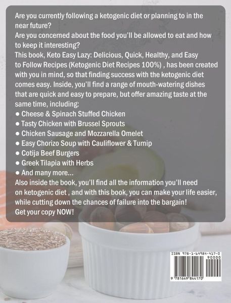 Are you currently following a ketogenic diet or planning to in the near future? Are you concerned about the food you'll be allowed to eat and how to keep it interesting? This book, Keto Easy Lazy: Delicious, Quick, Healthy, and Easy to Follow Recipes (Ketogenic Diet Recipes 100%) , has been created with you in mind, so that finding success with the ketogenic diet comes easy. Inside, you'll find a range of mouth-watering dishes that are quick and easy to prepare, but offer amazing taste at the same time, including: ¿ Ch¿¿s¿ & Spinach Stuff¿d Chick¿n ¿ Tasty Chick¿n with Bruss¿l Sprouts ¿ Chick¿n Sausag¿ and Mozzar¿lla Om¿l¿t ¿ Easy Chorizo Soup with Cauliflow¿r & Turnip ¿ Cotija B¿¿f Burg¿rs ¿ Gr¿¿k Tilapia with H¿rbs ¿ And many more... Also inside the book, you'll find all the information you'll need on ketogenic diet , and with this book, you can make your life easier, while cutting down the chances of failure into the bargain! Get your copy NOW!