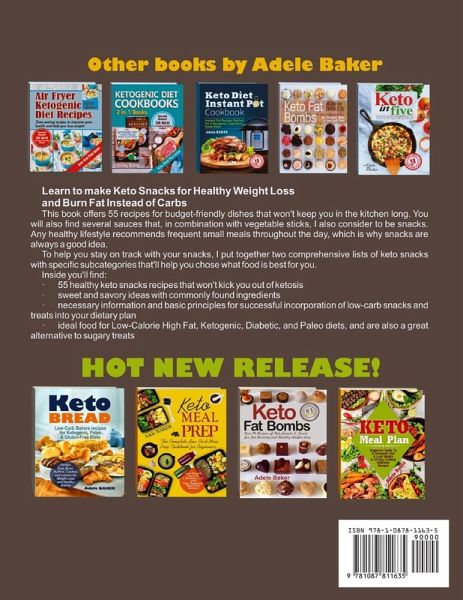 Learn to make Keto Snacks for Healthy Weight Loss and Burn Fat Instead of Carbs! This book offers 55 recipes for budget-friendly dishes that won’t keep you in the kitchen long. You will also find several sauces that, in combination with vegetable sticks, I also consider to be snacks. Any healthy lifestyle recommends frequent small meals throughout the day, which is why snacks are always a good idea. To help you stay on track with your snacks, I put together two comprehensive lists of keto snacks with specific subcategories that’ll help you chose what food is best for you. Inside you’ll find: 55 healthy keto snacks recipes that won't kick you out of ketosis sweet and savory ideas with commonly found ingredients necessary information and basic principles for successful incorporation of low-carb snacks and treats into your dietary plan ideal food for Low-Calorie High Fat, Ketogenic, Diabetic and Paleo diets, and are also a great alternative to sugary treats all recipes supported with colorful images and nutritional information Use these healthy and easy recipes and start cooking today!