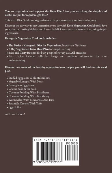 You are vegetarian and support the Keto Diet? Are you searching the simple and useful recipes for rapid weight loss? This Keto Diet Guide for Vegetarians can help you to save your time and money. Discover the easy way to stay vegetarian every day with Keto Vegetarian Cookbook! Save your time in cooking high fat and low-carb delicious vegetarian keto recipes, using simple ingredients. Ketogenic Vegetarian Cookbook includes:The Basics - Ketogenic Diet for Vegetarians, Important Nutrients 7 Day Vegetarian Keto Meal Plan for simple starting Easy and Tasty Recipes for busy people for every day. All meatless Each recipe includes full-color image and nutrients information for your understanding Discover are some of the healthy vegetarian keto recipes you will find on this meal plan:Stuffed Eggplants With Mushrooms Vegetable Lasagna With Nuts Parmigiano Eggplants Cheese Balls With Basil Coconut Pudding With Blackberry Coconut Pudding With Blackberry Warm Salad With Mozzarella And Basil Scramble Omelet With Tofu Egg Coffee And much more!