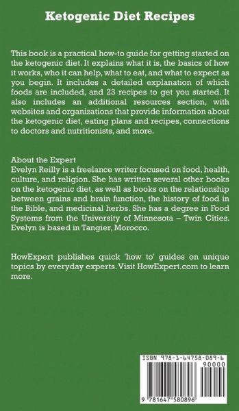 This book is a practical how-to guide for getting started on the ketogenic diet. It explains what it is, the basics of how it works, who it can help, what to eat, and what to expect as you begin. It includes a detailed explanation of which foods are included, and 23 recipes to get you started. It also includes an additional resources section, with websites and organizations that provide information about the ketogenic diet, eating plans and recipes, connections to doctors and nutritionists, and more. About the Expert Evelyn Reilly is a freelance writer focused on food, health, culture, and religion. She has written several other books on the ketogenic diet, as well as books on the relationship between grains and brain function, the history of food in the Bible, and medicinal herbs. She has a degree in Food Systems from the University of Minnesota – Twin Cities. Evelyn is based in Tangier, Morocco. HowExpert publishes quick 'how to' guides on all topics from A to Z by everyday experts.