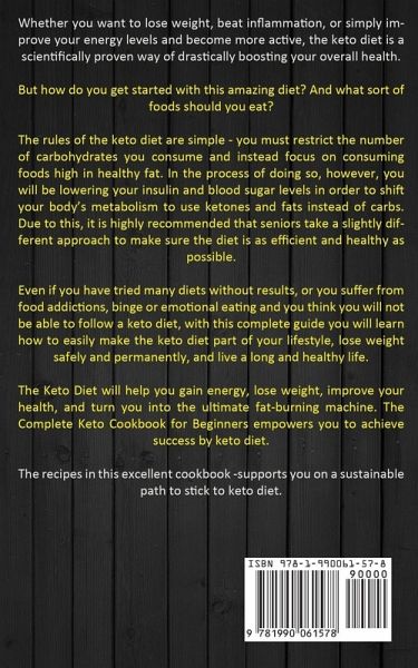 Whether you want to lose weight, beat inflammation, or simply improve your energy levels and become more active, the keto diet is a scientifically proven way of drastically boosting your overall health. But how do you get started with this amazing diet? And what sort of foods should you eat? The rules of the keto diet are simple - you must restrict the number of carbohydrates you consume and instead focus on consuming foods high in healthy fat. In the process of doing so, however, you will be lowering your insulin and blood sugar levels in order to shift your body's metabolism to use ketones and fats instead of carbs. Due to this, it is highly recommended that seniors take a slightly different approach to make sure the diet is as efficient and healthy as possible. Even if you have tried many diets without results, or you suffer from food addictions, binge or emotional eating and you think you will not be able to follow a keto diet, with this complete guide you will learn how to easily make the keto diet part of your lifestyle, lose weight safely and permanently, and live a long and healthy life. The Keto Diet will help you gain energy, lose weight, improve your health, and turn you into the ultimate fat-burning machine. The Complete Keto Cookbook for Beginners empowers you to achieve success by keto diet. The recipes in this excellent cookbook supports you on a sustainable path to stick to keto diet.