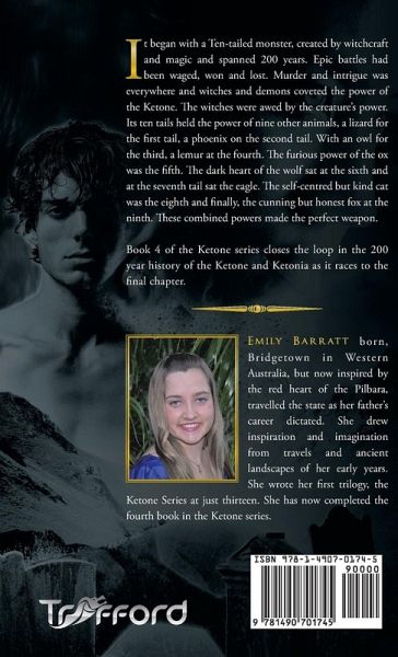 It began with a Ten-tailed monster, created by witchcraft and magic and spanned 200 years. Epic battles had been waged, won and lost. Murder and intrigue was everywhere and witches and demons coveted the power of the Ketone. The witches were awed by the creature's power. Its ten tails held the power of nine other animals, a lizard for the first tail, a phoenix on the second tail. With an owl for the third, a lemur at the fourth. The furious power of the ox was the fifth. The dark heart of the wolf sat at the sixth and at the seventh tail sat the eagle. The self-centred but kind cat was the eighth and finally, the cunning but honest fox at the ninth. These combined powers made the perfect weapon. Book 4 of the Ketone series closes the loop in the 200 year history of the Ketone and Ketonia as it races to the final chapter.