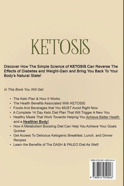 Discover The Transformative Powers of KETOSIS Today! Greatly Enhanced Brain Function and Energy Awaits You Are you feeling sluggish and lack energy in your daily life? Are you looking to improve your metabolic state while maintaning and even increasing your energy levels to function in your daily tasks? What If I Told You That The ONE Thing Missing is The Lack of Ketones For Those Crucial Bodily Functions? In "KETOSIS" you will learn and find... The Secret Power of Ketosis Powerful Keto Meal Plans That You Should Follow For Transformative Results A 14 Day Plan Just For You The 3 Phases of Metabolsim Do's and Don'ts For Increasing Metabolism What Inflammation Is and How You Can Prevent It? Creating A Diet Plan That Works For You How Incorporating A Paleo Diet Can Benefit You Delicious Breakfast, Lunch, and Dinner Recipes To Savour Tips and Tricks To Maintain Heightened Ketosis In Your Body And so much more… Let's Get You To Great Health ASAP! Pick up your copy of the book right now by clicking the BUY NOW button at the top of this page! To Your Success!