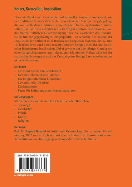 Der erste Band einer 'Geschichte professioneller Kontrolle' untersucht, wie es im Mittelalter, einer Zeit, in der er noch keinen Staat per se gab, gelang, die vom orthodoxen Glauben abweichenden Ketzer systematisch auszurotten, um damit ein Leitbild für alle künftigen Kontroll-Institutionen - von der frühneuzeitlichen Hexenverfolgung über die Geschichte der Psychiatrie bis hin zur gegenwärtigen Drogenpolitik - zu schaffen. Am Beispiel der Inquisition der Katharer im französischen Languedoc während des 12. und 13. Jahrhunderts wird deren machtpolitischer, religiös-mentaler und kultureller Hintergrund beschrieben. Dabei gewinnt der 200-jährige Kontakt mit einer fortgeschritteneren und toleranteren islamischen Kultur während der spanischen Reconquista und der Kreuzzüge ins Heilige Land eine besondere aktuelle Bedeutung.