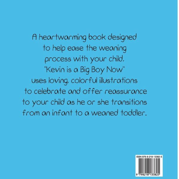 A heartwarming book designed to help ease the weaning process with your child, "Kevin is a Big Boy Now" uses loving, colorful illustrations to celebrate and offer reassurance to your child as he or she transitions from infant to a weaned toddler.