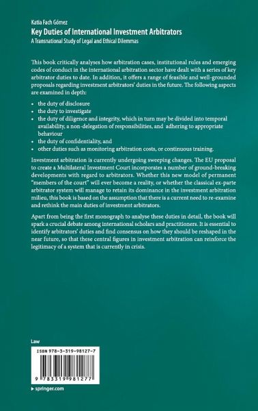 "This book offers a useful framework for the treatment of the key duties of arbitrators, and serves as a clear signpost for the current fascinating debate concerning the future of adjudicators' duties, as well as for future studies in the field." (Anqi Wang, Chinese Journal of International Law, May 28, 2019)