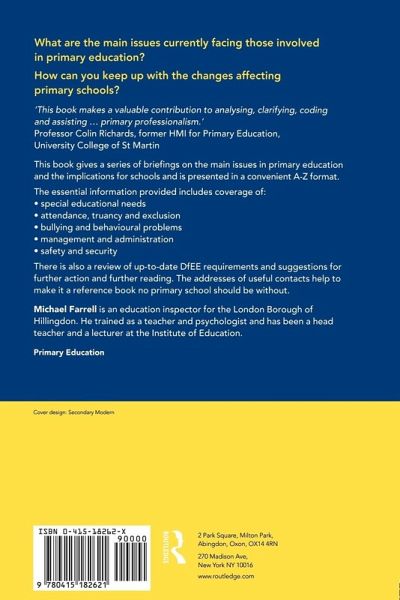 Key Issues for Primary Schools is a concise comprehensive guide to the main issues in primary education and the implications for schools. Presented in a convenient A-Z format, the book includes coverage of: * special educational needs * attendance, truancy and exclusion * bullying and behavioural problems * management and administration * safety and security. There is also a review of up-to-date DfEE requirements and suggestions for further action and reading. The addresses of useful contacts help to make it a reference book no primary school should be without.
