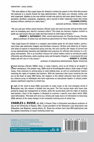 School business officials (SBOs) must, in many respects, serve as all things to all people in their workplaces. Put another way, SBOs must be knowledgeable about a wide range of legal issues ranging from contracts to setting policy to state biding laws let alone constitutional matters involving the rights of students and teachers. Aware of the fact that issues involving the law are at the heart of many of a SBO’s duties, the chapters in this edited book have been written by a diverse array of individuals with experience as educational leaders in schools and/ or who possess significant expertise in the School Law. In light of the need to keep SBOs up-to-date on many issues in the ever changing world of Education Law, this volume is divided into two parts. The first section deals with issues that primarily impact on the management of schools while the second deals with the rights of students and teachers. More specifically, each of the chapters is designed to examine a specific area about which SBOs need information. While no single book can ever hope to cover all of the myriad of legal topics that SBOs and other educational leaders must master in their professional lives, this book will serve as an up-to-date and ready source of information to help keep them abreast of the many changes in the ever evolving area of School Law.